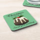 Weihnachts-Untersetzer mit Korkrücken und Slogan "Weihnachten ist kurz so genießen Sie Ihr Pudding!" mit dem Bild von Weihnachtspudding mit Heiligen dekoriert.