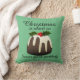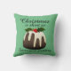 Weihnachten, festliches Grün-Werfer-Kissen mit dem Slogan "Weihnachten ist kurz, also gönnen Sie sich Ihr Pudding!" mit dem Bild von leckeren aussehenden Weihnachtskuscheln dekoriert mit Heiligen.