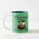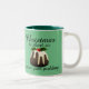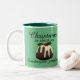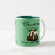 Weihnachten zwei Töne Tasse mit dem Slogan "Weihnachten ist kurz so genießen Sie Ihr Pudding!" mit dem Bild von köstlich aussehenden Weihnachtskuchen mit Heiligen dekoriert.