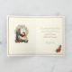 Schönes Vintage Bild der Heiligen Familie, Jesus Maria und Heiliger Joseph an der Geburt Jesu mit roten Poinsettien. Im Inneren ist das gleiche Bild und die Animation einer Kerze mit pointsettias und ein heiliger Rosenkranz. Alle Texte und Schriftart können geändert werden.