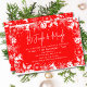 Weihnachts-Bell-Jingle und Mingle Fun Moderne Winter-Party Einladungen bieten einen Rahmen aus Weihnachtsbröckchen, Schneeflocken, Heiligen- und Weihnachtsschmuck in Weiß auf einem roten Hintergrund. Der Text ist in weißer Hand geschrieben Kalligraphieskripttypografie. Personalisiert mit Ihrer Weihnachts-Party Einladung Informationen, indem Sie den Text in den Textfeldern zur Verfügung gestellt. Entworfen von ©Evco Holidays www.zazzle.com/store/evcoholidays.