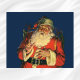 Vintage Illustration Frohe Weihnachtsgestaltung mit einem fröhlichen, fröhlichen Weihnachtsmann mit einem langen weißen Bart und einem Hut mit einem Sack voller Spielsachen an Heiligabend.