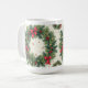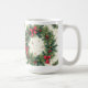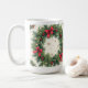 Diese Tasse hat eine Weihnachtsatmosphäre mit einem großen Kranz.