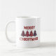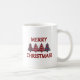 Weihnachtskaffee-Tasse mit vier rautenkarierten Weihnachtsbäumen.