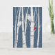 Schneeaugen und Rotvögel in Birken mit Schneeflocken auf sternblauem Hintergrund.