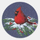 WEIHNACHTEN: KARDINAL: VOGEL: KUNST RUNDER AUFKLEBER