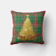 Weihnachtsbaum Kissen grün, weiß kariert und ein glitzernder goldener Weihnachtsbaum und Worte, "Frohe Weihnachten".