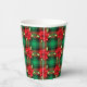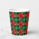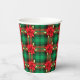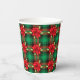 Fügen Sie Ihrer Weihnachtsmahlzeit oder Ihrem Party eine Touch Weihnachten mit diesem Papiertasse mit kariertem Hintergrund hinzu, auf dem sich Poinsettias in traditionellen Weihnachtsfarben befinden.