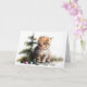 Aquarellkunst eines niedlichen Kätzchens mit Weihnachtsschmuck und Kiefernbaum.