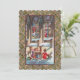 Flache Weihnachtskarte mit Kindern, die vor einem beleuchteten Kirchenfenster mit Buntglas an Heiligabend stehen, mit den Worten "Siehe! Ein Kind ist geboren!" Auf der Rückseite ist Platz für Ihr individuelles Bild Ihrer Familie. Personalisieren Sie den Text mit Ihrem Familiennamen. Die Nachricht auf der Rückseite der Karte lautet "Und er wird Jesus genannt werden, der Sohn Gottes!" zusammen mit "Frohe Weihnachten."