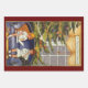 Vintage Abbildung Viktorianisches Weihnachtsbild mit glücklichen Geschwistern auf einem Sofa. Ein Bruder und eine Schwester auf einem Sofa haben einen dekorierten Weihnachtsbaum und ein Fenster hinter ihnen. Das Mädchen liest ein Buch, und der Junge isst einen Bonbons. Im Text steht "Frohe Weihnachten".