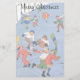 Vintage Illustration Frohe Weihnachtsbilder mit fröhlichen Jungs und Mädchen Spaß haben. Die Skater spielen und eisen Skaten auf einem gefrorenen Teich mit Bäumen und Schnee an einem sonnigen Wintertag. Grüße der Saison!