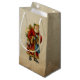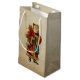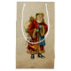 Geschenktasche mit einem Vintagen Weihnachtsmann der Alten Welt. Klassische alte Welt santa, mit seinem berühmten roten Mantel und einer Tasche voller Spielzeuge. Dieser altmodische Weihnachtsmann ist schlank und hält einen Gehstock, um durch das Land zu reisen und allen Mädchen und Jungen Spielzeuge zu schenken. Alter Pergamentstil.