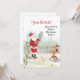 Feiern Sie den Urlaub auf dem Platz! Diese festliche Tennis-Weihnachtseinladung bietet den Weihnachtsmann auf einem schneebedeckten Tennisplatz mit einem Tennisschläger, verstreuten Tennisbällen, bunten Lichtern aus Märchen und einer Weinflasche mit Gläsern in der Nähe für eine Touch Feiertagssaufe. Ideal für Tennisliebhaber, Freunde und Ansammlungen dieser Weihnachtszeit.