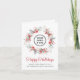 Elegante Weihnachtsgrüßkarte mit Ihrem Firmenlogo, einem Aquarellkranz aus roten Blumen, Beeren und saisonalem Grün und "Happy Holidays" in einem eleganten roten Drehbuch. Personalisieren Sie Ihren Gruß und Ihren Firmennamen in einfacher moderner Typografie. Im Inneren personalisieren Sie eine Nachricht von Kundenzufriedenheit und fügen Ihre Website, Kontaktinformationen oder anderen Text hinzu.