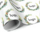 Erstellen Sie für die Weihnachtsfeiertage Ihr eigenes Logo-Packpapier mit Ihrem Firmenlogo und Blumenkranz-Design.
