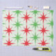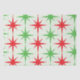 Das ist eine elegante Weihnachten Mitte des Jahrhunderts Atomic Sternexplosionen in rot und grün auf weißem Hintergrund. Es ist großartig aussehendes Gewebpapier für die Weihnachtszeit