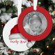 Niedliche whimsical Merry Mistletoe Holiday Weihnachten Foto Ornament. Personalisiert mit einem individuelle Name. Ein trendiges niedliches Weihnachtsgeschenk. Eine lustige und trendige Art, den Urlaub zu feiern. Dieses Design zeigt Weihnachtsfeiertag modernen niedlichen Weihnachtsmann, das Foto knusprig rot, minimalistisch schmeichelnd schlicht schmückender Weihnachtsmann, moderne und minimalistische, Aquarellrot-Weihnachtsmannmütze, klassische Klassik, individueller Jahrname, niedliche Kalligraphie Text Schriftart Typografie, Kunstwerke von Laura Lacina, Weihnachtsgeschmack im Foto