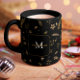 Weihnachten Moderner Winterurlaub Gold Arch Monogram Coffee Tasse Trinken Sie Ihren Kaffee im Stil mit dieser schicken Tasse mit Ihrem Monogramm gerahmt durch die Weihnachts Gold Arch Blätter Sterne und Punkte. Spaß und Festlichkeit - die perfekte Tasse für den Urlaub.