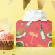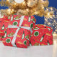 Weihnachten nahtlos im Retro-Stil. Weihnachtstisch mit Putensilien und Champagner auf rotem Hintergrund mit Schneeflocken.