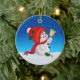 Richten Sie Ihren Weihnachtsbaum auf und geben Sie Ihrer Weihnachtsdekoration eine Touch der Wärme und Spannung der Ferien mit diesem charmanten Kreis Keramik Weihnachtsbaumschmuck. Mit einem niedlichen Schneemann, der eine goldene Weihnachtsglocke auf einem weißen Schneefeld, einen strahlend blauen Winterhimmel und den Anfängen des Schneefalls hält, ist dieses bezaubernde Ornament eine perfekte Art, die Urlaubssaison mit Ihrer Familie zu gedenken und ein großartiges Geschenk für alle Ihre Lieben zu machen.