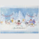 Dieses bezaubernde Weihnachtsdesign der Snowman Family Nativity Szene besticht durch einen frostigen Winterschneehimmel mit niedlichen, klassischen Schneemännern, Schneeangels und Waldtieren, die in Aquarellfarben gemalt wurden. Gemalt und entworfen von Audrey Jeanne Roberts, einer international anerkannten Künstlerin und Designerin, Urheberrecht.