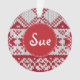 Die zeitlosen Xmas Strickmuster sind wieder in Mode. Im Allgemeinen ist es schon seit einigen Jahren in der Sache, und nicht nur Ihre durchschnittliche Großmutter nimmt es an. Die Pullover "Fair Isle" waren während der 1920er und frühen 30er Jahre wütend, und dann in den 50er Jahren. Jetzt mit der Wiederbelebung von allem Vintagen und schottischen, sind dieser klassische Stil zusammen mit klangvollen Tartan das neue angesagte. Hier wird das gegossene Weihnachtsmuster auf einer großen Produktpalette in den klassischen Xmas-Farben Rot und Weiß verwendet. Die Produkte aus der Kollektion 'Knitted Xmas' sind entweder schlicht anpassbar oder können mit einem Namen, Monogramm, Initialen oder einer Zahl auf einem roten Kreis oder einem quadratischen Etikett mit einem weißen gepunkteten Rand personalisiert werden. Die Weihnachtsfeiertage beinhalten 2 Grußversionen: MERRY CHRISTMAS AND HAPPY NEW YEAR und SAASON'S GREETINGS.