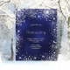 Eine Wintereinladung für ein Weihnachtsfest im Party. Der Hintergrund ist blau und uneinheitlich, die Imitate strahlen Glitzer aus. Personalisieren Sie Ihre Party-Daten und fügen Sie sie hinzu.