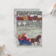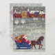 Vintage Abbildung Viktorianisch Fröhliches Weihnachtsbild mit einem fröhlichen Weihnachtsmann-Reiten in einem Pferd Open Sleigh am Heiligabend. Im Winter schneit es mit einer schläfrigen Stadt in der Ferne. Weiße Bäume bedeckt mit schneebedeckten Ästen, während Schneeflocken sanft vom Nachthimmel fallen.