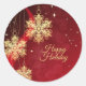 Weihnachts Party Geschenk Rote goldene Schneeflocken Holiday Classic Round Sticker. Einzigartiges, schönes, stilvolles Design. Leicht personalisiert zu sein. Schriftart Stil, Größe und Farben können geändert werden. Matching-Elemente sind verfügbar.