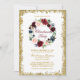 Elegante Watercolor Burgund Marsala Blumenreath Weihnachtsfeier Party Einladung. Freuen Sie sich auf schöne Rose und botanische Vegetation. Gold Glitzer Frame.