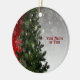Weihnachts Party Grüne Bäume Rot Silberschneeflocken Keramik Ornament. Einzigartiges, schönes, stilvolles Design. Leicht personalisiert zu sein. Schriftart Stil, Größe und Farben können geändert werden. Matching-Elemente sind verfügbar.