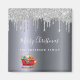 Ein Imitat silbermetallices Aussehen mit Imitaten silberne Glitzer Tropfen, ein bisschen Bling und Luxus für ein WeihnachtsParty. Der alte, Vintage Rot-Schlitten des Weihnachtsmanns, der mit Geschenken als Dekoration gefüllt ist. Mit dem Text: Feiertag. Vorlage für Ihren Familiennamen, weiße Buchstaben.