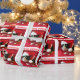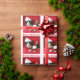 Dieses Weihnachtspapier ist so bezaubernd, da es eine Katze mit einer Weihnachtsmannmütze und einem Bogen auf einem samtartigen Hintergrund enthält. Die Worte "Meowy Christmas" erscheinen oben auf der Zeitung, um für lustige Katzenliebhaber Weihnachtspapier zu machen. Der Tuxedo-Katze das Urheberrecht entzieht