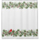 Elegante Weihnachtsbadezimmerdekoration mit Garnelen aus Nadelkronen, heiligen Blätter, Beeren und einem schönen roten Kardinal. Mit weißem Hintergrund macht dieser Duschvorhang eine elegante und besondere Note auf Ihrem Zuhause.