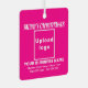 Frohe Weihnachten! Metal-Ornament mit fröhlichen Weihnachtsgrüßtexten, Ihrem Geschäfts- oder Firmennamen, Logo, Adresse und Telefonnummer. Designs sind weiße Texte auf rosa Hintergrund und quadratischer Form. Ornament zur Dekoration des Weihnachtsbaumes in Ihrem Geschäft, Shop oder Büro. Ornament, um Ihre Kunden in dieser Feriensaison visuell zu begrüßen und Ihr Unternehmen zu werben oder Ihren Markennamen zu fördern. Passen Sie es an und nutzen Sie es, um Markenbewusstsein zu schaffen. Bitte Karo des Erscheinungsbildes nach dem Hochladen von Logos und Schriftzeichen. Wenn Ihnen das Aussehen gefällt, können Sie jetzt Ihre Bestellung aufgeben. Wenn Sie das Logo und die Texte verändern und verschieben müssen, um auf diesen Schmuck oder auf andere Stile, die Sie wählen werden, passen Sie bitte das Design-Tool an. Sie können auch andere Änderungen vornehmen, die Ihren Wünschen entsprechen, z.B. die Farbgestaltung des Ornaments, die Farbe des Schriftartes und der Stil des Schriftartes. Frohe Weihnachten! Wir wünschen Ihnen mehr Umsatz in dieser Feriensaison.