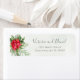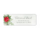 Schönes Rückadressschild mit handgemalten botanischen Aquarellbildern von Poinsettia-Blume, Wintergärten, Kiefer- und Fichtenzweigen und Heiligbeeren. Ideal für Weihnachtsfeiern.