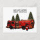 Weihnachtskarten des Feuerwehrmanns mit dem Weihnachtsmann, der Geschenke aus einem Motor und lustigen Zitaten liefert.