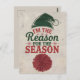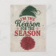 Ein Design mit dem Text "Ich bin der Grund für die Saison". Über dem Text ist ein großer, grüner, spitzer Hut. Unter dem Text ist ein großes, rotes Pom.