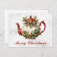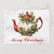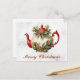 Jeder Teefreund würde Liebe haben, diese Weihnachtspostkarte des Jahrgangs mit einer Retro-Abbildung eines blumengeschmückten, heiligen Teekanne zu erhalten! Behalt die frohe Weihnachtsbotschaft oder kreiere deine eigene kurze Urlaubsbotschaft.