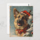 Diese herzzerwärmende Weihnachtskarte zeigt eine wunderbare Illustration eines deutschen Hirten, der mit einem festlichen Urlaubskranz um den Hals geschmückt ist. Der treue und festliche Hundebegleiter verleiht der Saison eine Touch der Wärme, die den Geist der Freude und der Freundschaft verkörpert. Teilen Sie die Liebe und den Beifall der Ferien mit dieser charmanten Karte, die perfekt ist, um Ihren Freunden und der Familie herzliche Wünsche zu senden.