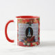 Ein Foto von Weihnachten Present's und ein Musikbuch Box mit einer blauen Kirche in der Mitte. Das ist hell und farbenfroh auf einer Kaffee-TASSE. Das war in Hutchinson Kansas USA.
