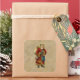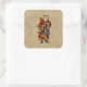 Aufkleber mit einem Vintagen Weihnachtsmann der Alten Welt. Klassische alte Welt santa, mit seinem berühmten roten Mantel und einer Tasche voller Spielzeuge. Dieser altmodische Weihnachtsmann ist schlank und hält einen Gehstock, um durch das Land zu reisen und allen Mädchen und Jungen Spielzeuge zu schenken. Alter Pergamentstil.