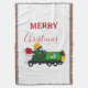 Eine niedliche Illustration eines weihnachtlich recycelnd Müllwagens, der eine Weihnachtsmannmütze trägt und in Weihnachtsbeleuchtung mit den Worten "Frohe Weihnachten" dekoriert ist. Ein ideales Weihnachtsdeckendesign für Groß oder Klein, Mädchen oder Jungen.
