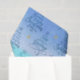 Dieses Papiertaschentuch zeigt ein Muster von Strandurlaub-Redewendungen mit Skriptkalligraphie in Form von Weihnachtsbäumen: "Sand ist der neue Schnee", "Seas & Greetings" und "Haben Sie eine sehr beachy Weihnachten", verstreut mit winzigen Seesternen, auf einem abstrakten Strandhintergrund. Bitte kontaktieren Sie mich über den Zazzle Chat, wenn Sie andere Farbtöne oder Designtschwächen oder mehr passende Produkte benötigen.