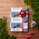 Vergnügen Reitpäckchen zeigen ein Pferd und Reiter springen ihr Pferd in den Schnee und den Gruß frohe Weihnachten.