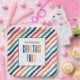 Retro farbenfrohe Streifen mit lebendiger Typografie "Weihnachts-Party" Papierplatte. Personalisieren Sie es mit Ihrem Namen. Perfektes Party Zubehör für die gleiche Kollektion.