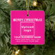 Frohe Weihnachten! Keramik mit fröhlichen Weihnachtsgrüßtexten, Ihrem Geschäfts- oder Firmennamen, Logo, Adresse und Telefonnummer. Designs sind weiße Texte auf rosa Hintergrund und quadratischer Form. Ornament zur Dekoration des Weihnachtsbaumes in Ihrem Geschäft, Shop oder Büro. Ornament, um Ihre Kunden in dieser Feriensaison visuell zu begrüßen und Ihr Unternehmen zu werben oder Ihren Markennamen zu fördern. Passen Sie es an und nutzen Sie es, um Markenbewusstsein zu schaffen. Bitte Karo des Erscheinungsbildes nach dem Hochladen von Logos und Schriftzeichen. Wenn Ihnen das Aussehen gefällt, können Sie jetzt Ihre Bestellung aufgeben. Wenn Sie das Logo und die Texte verändern und verschieben müssen, um auf diesen Schmuck oder auf andere Stile, die Sie wählen werden, passen Sie bitte das Design-Tool an. Sie können auch andere Änderungen vornehmen, die Ihren Wünschen entsprechen, z.B. die Farbgestaltung des Ornaments, die Farbe des Schriftartes und der Stil des Schriftartes. Frohe Weihnachten! Wir wünschen Ihnen mehr Umsatz in dieser Feriensaison.
