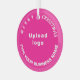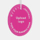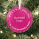 Frohe Weihnachten! Glasschmuck mit fröhlichen Weihnachtsgrüßtexten, Ihrem Geschäfts- oder Firmennamen und Logo. Designs sind weiße Texte auf rosa Hintergrund und kreisförmig. Ornament zur Dekoration des Weihnachtsbaumes in Ihrem Geschäft, Shop oder Büro. Ornament, um Ihre Kunden in dieser Feriensaison visuell zu begrüßen und Ihr Unternehmen zu werben oder Ihren Markennamen zu fördern. Passen Sie es an und nutzen Sie es, um Markenbewusstsein zu schaffen. Bitte Karo nach dem Hochladen des Logos und der Eingabe Ihres Firmennamens. Wenn Ihnen das Aussehen gefällt, können Sie jetzt Ihre Bestellung aufgeben. Wenn Sie das Logo und die Texte verändern und verschieben müssen, um auf diesen Schmuck oder auf andere Stile, die Sie wählen werden, passen Sie bitte das Design-Tool an. Sie können auch andere Änderungen vornehmen, die Ihren Wünschen entsprechen, z.B. die Farbgestaltung des Ornaments, die Farbe des Schriftartes und der Stil des Schriftartes. Frohe Weihnachten! Wir wünschen Ihnen mehr Umsatz in dieser Feriensaison.