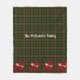 Vier karierte Scottish Terrier Spielhunde, auf einer karierten Fleecedecke aus grünem und rotem Tartan. Personalisieren Sie Ihre Daten mit Ihrem Familiennamen, Monogramm oder Initialen.